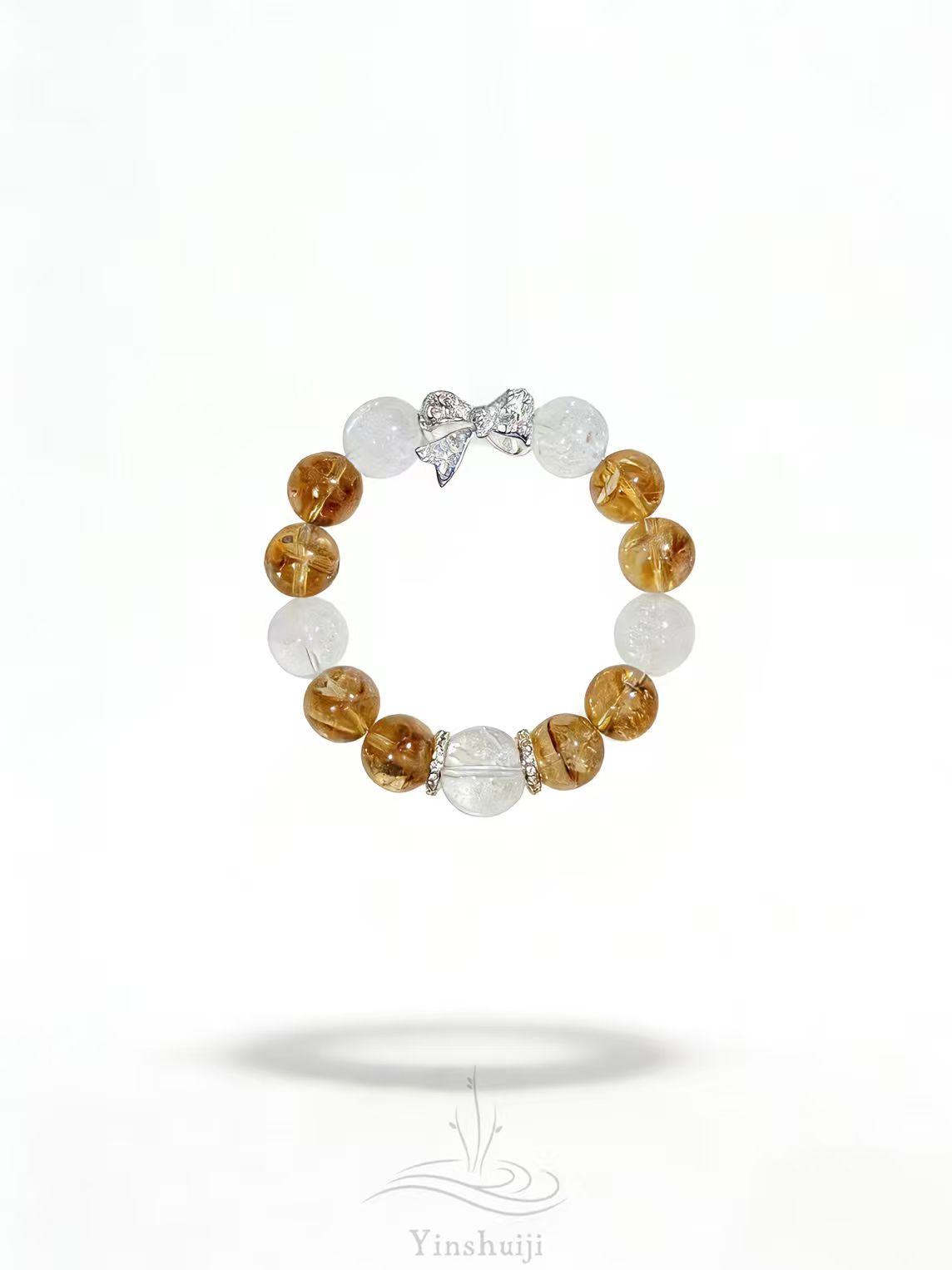 A synergistic blend of high-vibration Azeztulite Quartz and structured Yellow Phantom Quartz, accented with a sterling silver bow motif.