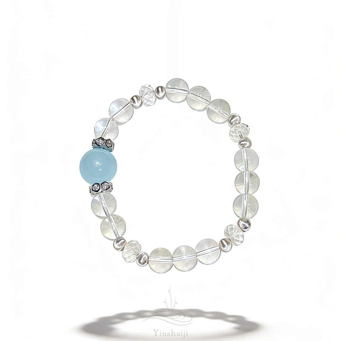 This creation is an orchestration of absolute transparency and fluid resilience. The pristine Clear Quartz establishes a firm foundation of Metal, channeling the energy of structural precision,  focused intent, and purification. It is augmented by the serene, crystalline depth of Aquamarine, representing the adaptive and articulate essence of Water. This configuration is specifically curated to foster an internal environment of calm decisiveness and unclouded vision, supporting your professional path like a steady mountain stream (Metal) finding its way with effortless grace(Water), without making claims on health or altering destiny.