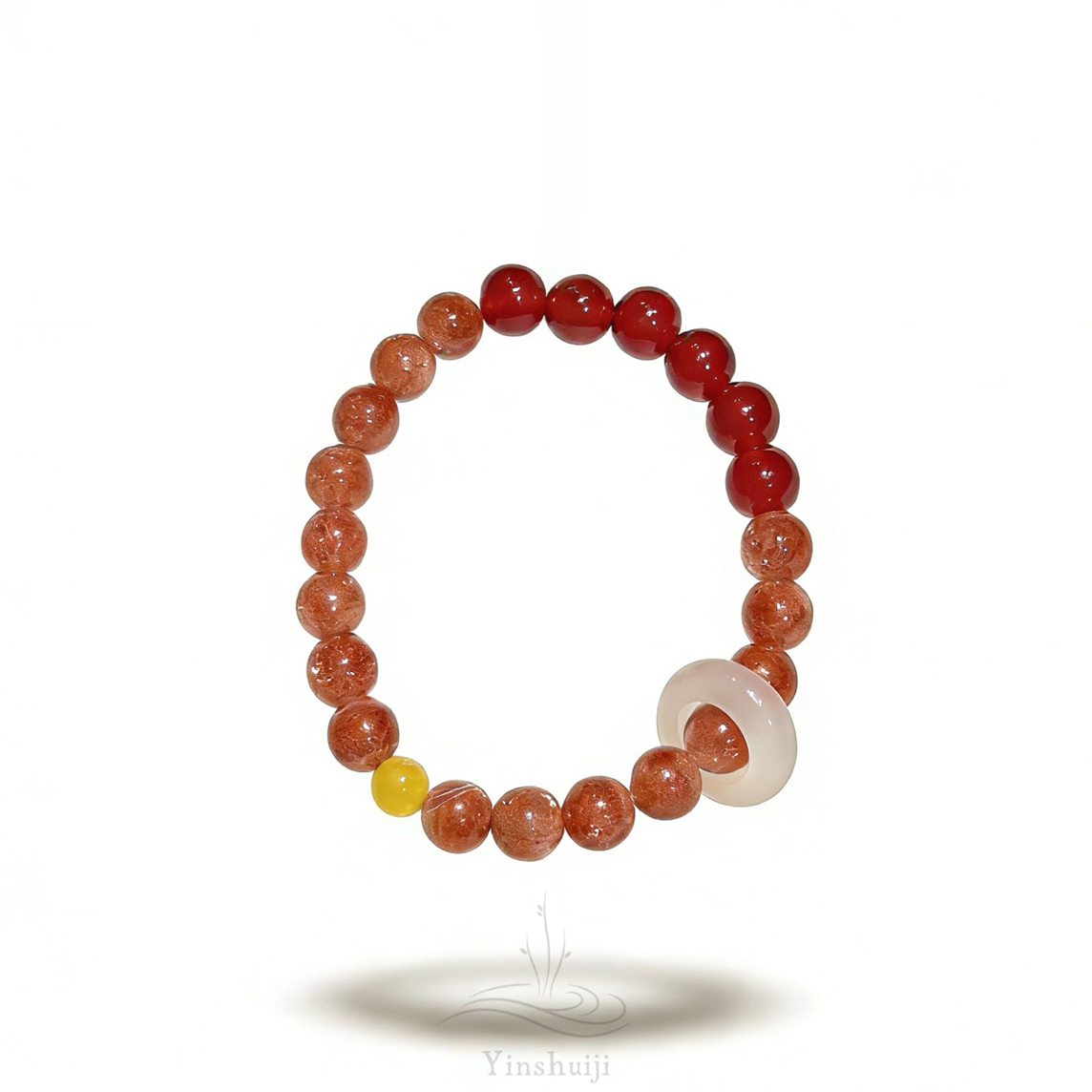 Golden Sunstone and Red Agate establish a powerful foundation of Fire, channeling the energy of optimistic expansion, creative ignition, and outward momentum. This solar intensity is